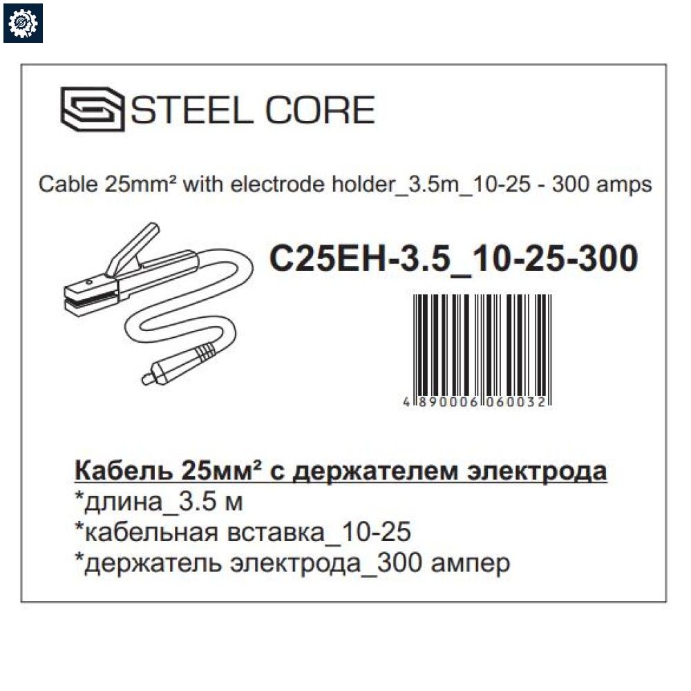 Сварочный кабель 25мм² с держателем электрода STEEL CORE C25EH-3.5. Ключевые параметры: сечение 25мм², с держателем, STEEL CORE, надежный.