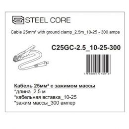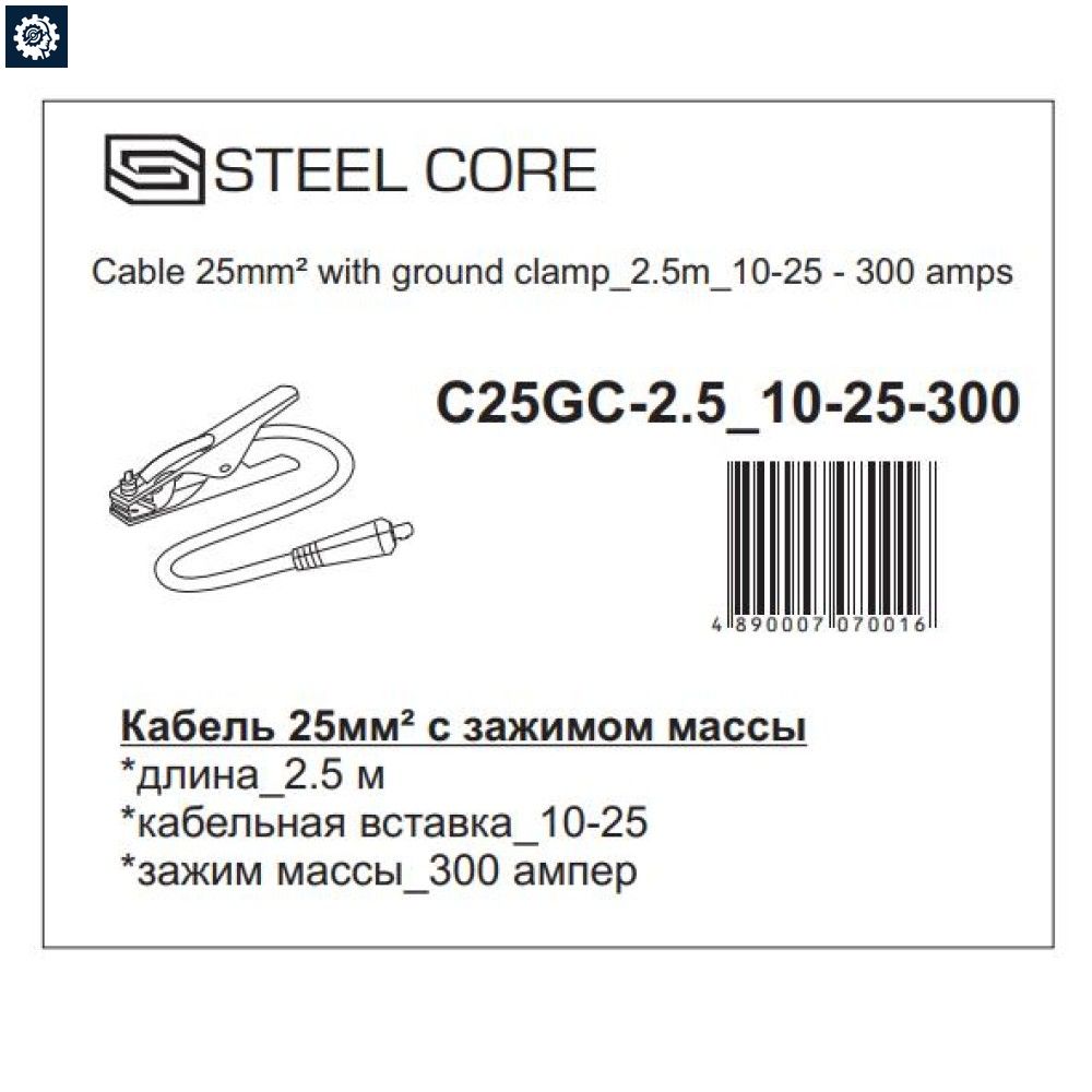 Кабель STEEL CORE C25GC-2.5 с зажимом массы, 25 мм² предназначен для безопасной и эффективной передачи тока. Ключевые параметры: сечение 25 мм², зажим массы, бренд STEEL CORE, модель C25GC-2.5, надежное соединение.