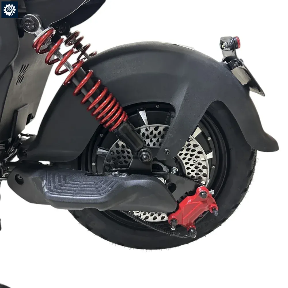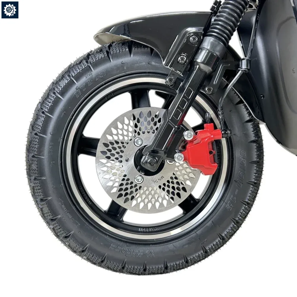 Заднее мотор-колесо на 1500W обеспечивает уверенный старт и разгоняет скутер до 70 км/ч (доступно 3 скоростных режима). В отличие от обычных литий-ионных батарей, здесь установлен передовой аккумулятор LiFePO4 (литий-железо-фосфатный). Он не боится холодов и позволяет полноценно эксплуатировать скутер даже при морозах до -30 градусов!