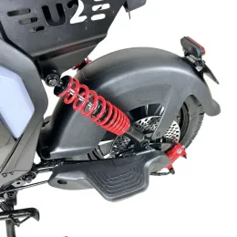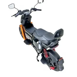 Крепкая усиленная стальная рама выдерживает феноменальную нагрузку до 200 кг. Полноценное двойное сиденье, отдельные подножки для пассажира и мягкая подвеска (двухподвес спереди и сзади) делают ваши совместные поездки по городу невероятно удобными и плавными.