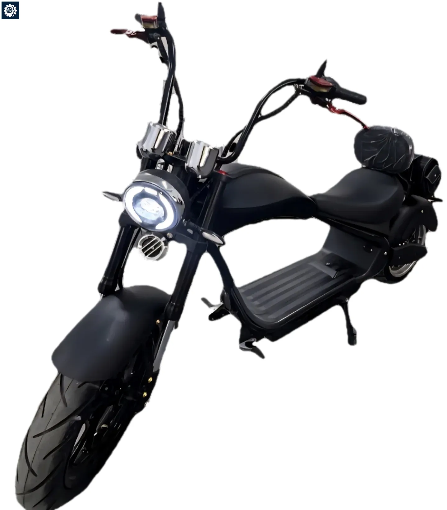 Этот электроскутер смотрится дорого и эффектно, его чёрный карбоновый стиль напоминает классические Harley-Davidson.
