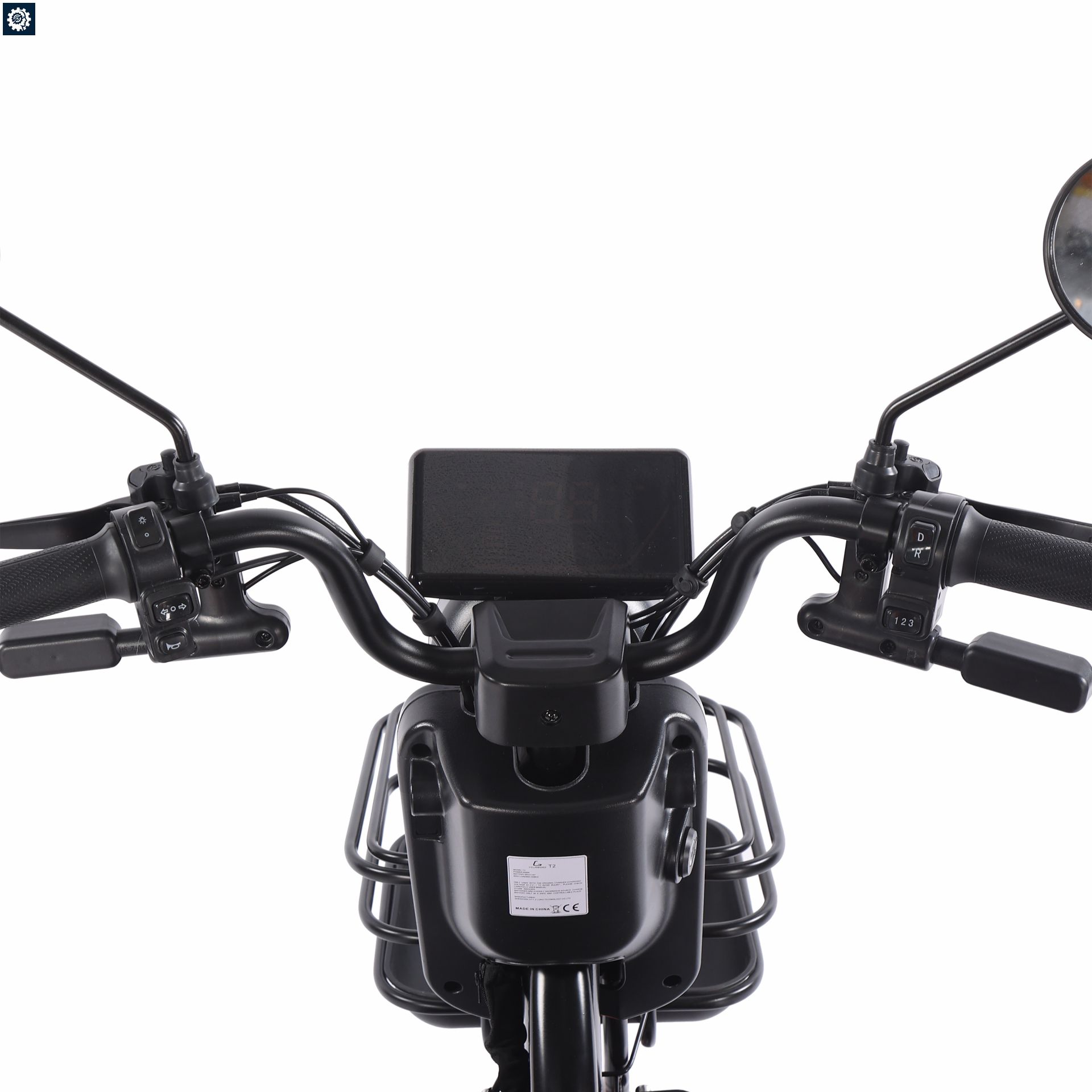 - Информативный дисплей: Крупный цифровой экран на руле отображает всю важную информацию: скорость, пробег, выбранный режим и уровень заряда батареи.