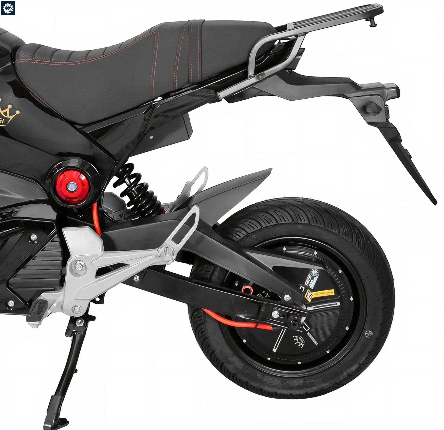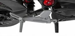 Передняя вилка и задний амортизатор с маятником отлично отрабатывают городские неровности. 12-дюймовые колеса обеспечивают манёвренность мотарда. Гидравлические дисковые тормоза спереди и сзади гарантируют эффективное замедление.