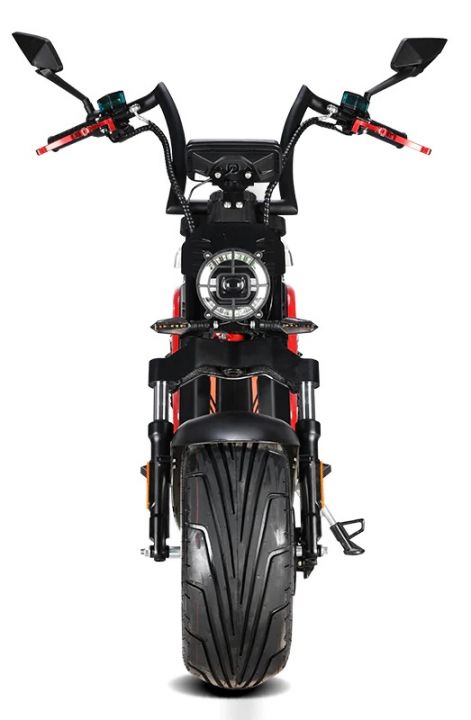 Этот городской электроскутер в стиле чоппер оснащен мощным двигателем мощностью 3000 Вт и аккумулятором на 24 ампер-часов, что позволяет ему развивать скорость более 55 км/ч.