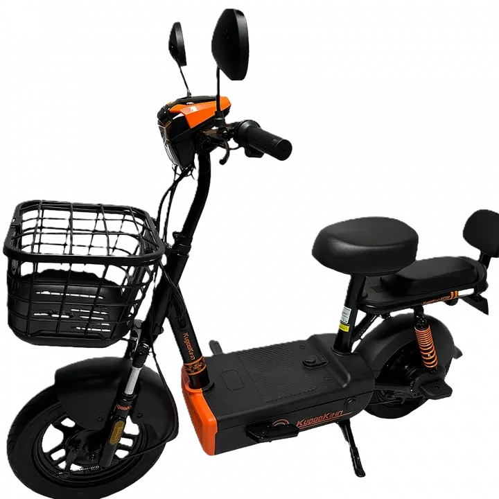 Kugoo Kirin EC 02 выделяется эргономичным и практичным дизайном. Прочная рама из алюминиевого сплава, удобное двойное сиденье и 12-дюймовые надувные колёса делают поездку плавной и комфортной на любых поверхностях, от городских дорог до сельских троп.