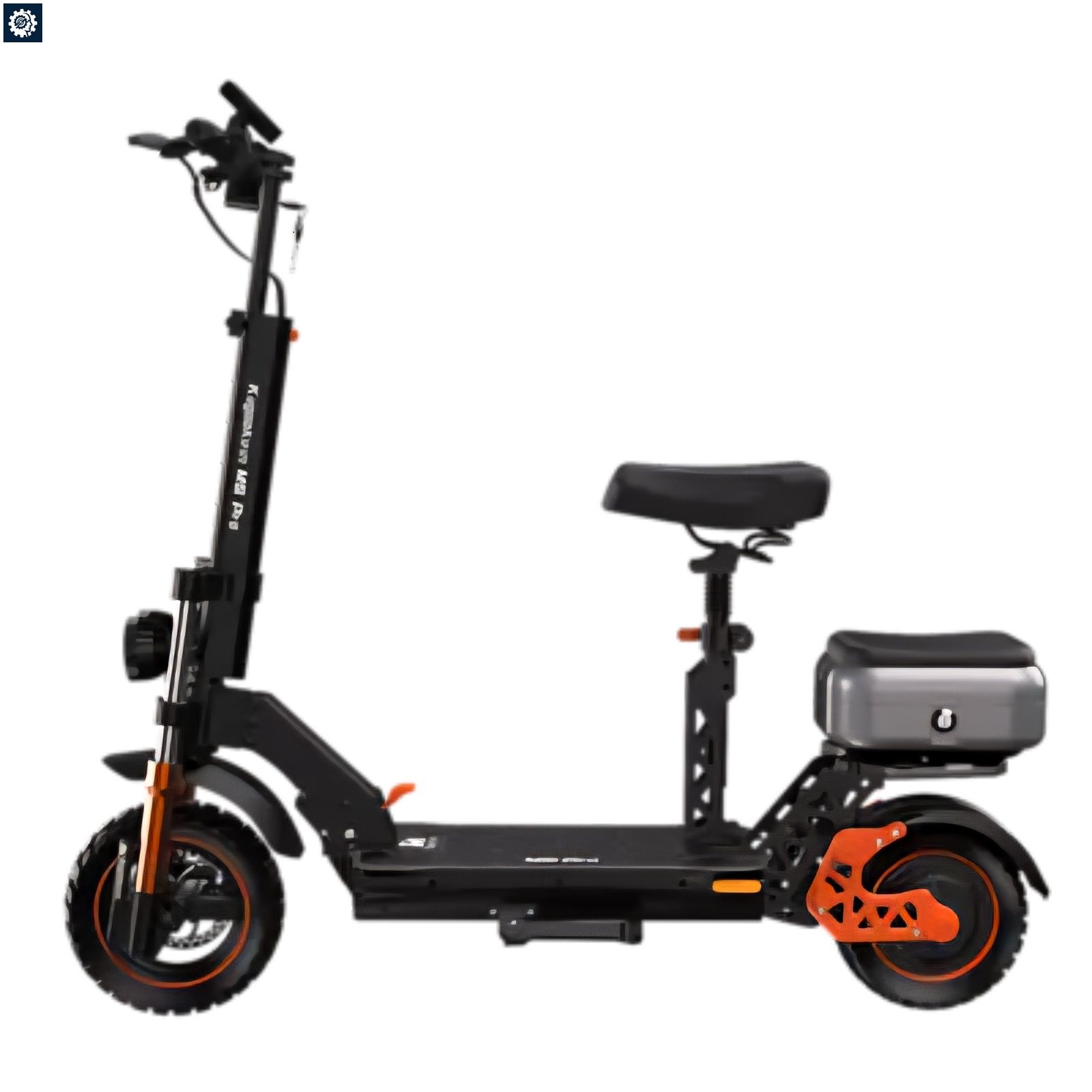 KUGOO KIRIN M5 PRO — универсальный электросамокат для города и бездорожья. Мотор мощностью 1000 Вт (пиковая до 1200 Вт), батарея 48 V 20–21 Ah и запас хода до 70 км. Максимальная скорость — до 52 км/ч. Оснащён дисковыми тормозами, полной подвеской, регулируемым сиденьем, LED-освещением и защитой IP54. Подходит для райдеров до 120–150 кг.