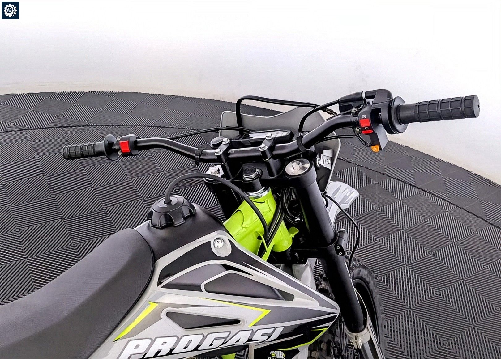 Короткоходная ручка газа — быстрый отклик без «перехватов». Сиденье PROGASI по технологии Acerbis anti-slip цепко держит райдера. Полностью диодная оптика и электронная приборка (скорость, обороты, пробег, передача, заряд) — всё видно и понятно.