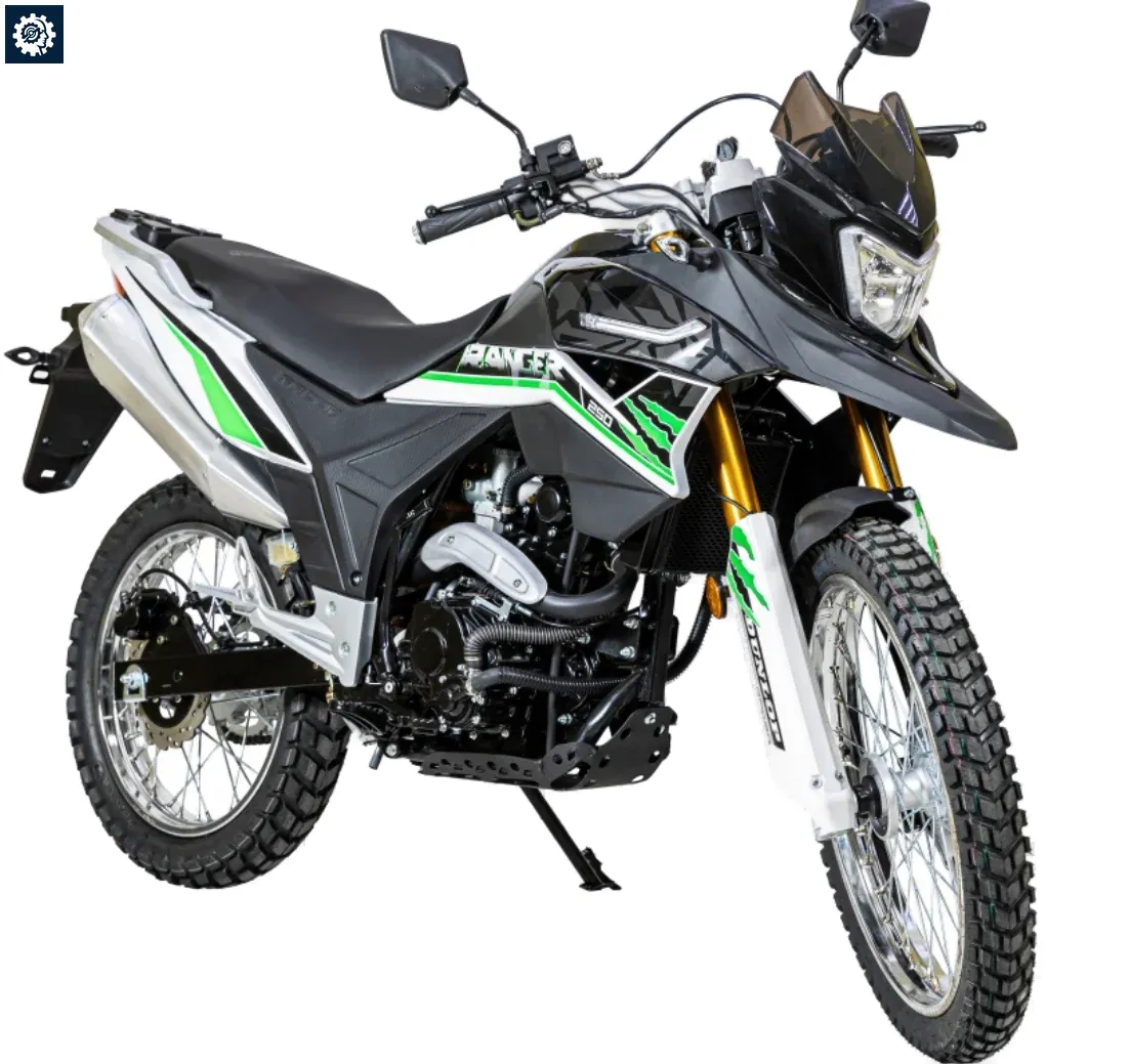 RACER RC300-GY8 RANGER — лёгкий туристический эндуро 270 см³ с масляным охлаждением Универсальный турэндуро с мотором 270 см³ (19,7 л.с.) и 5-ступенчатой коробкой. Подходит для города, трассы и лёгкого бездорожья. Отличается комфортной посадкой, надёжной подвеской и современным дизайном. Основные характеристики: Двигатель: 4Т, 270 см³, балансировочный вал Мощность: 19,7 л.с. при 7500 об/мин Охлаждение: масляное КПП: 5 передач (1-N-2-3-4-5) Система запуска: электростартер + кикстартер Подвеска: Передняя — телескопическая Задняя — моноамортизатор с регулировкой Тормоза: дисковые (перед/зад) Колёса: 21"/18", спицованные Бак: 12 л Макс. скорость: до 145 км/ч Расход: ~3,4 л/100 км Вес: 128 кг Нагрузка: до 188 кг Панель: цифровая, с USB Свет: LED фара, стоп и поворотники ПТС: есть Преимущества: Невысокая цена, небольшой вес, прочная защита, комфортная посадка и надёжная ходовая. Идеален для мототуризма, обучения и поездок по смешанным дорогам.