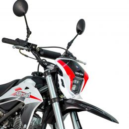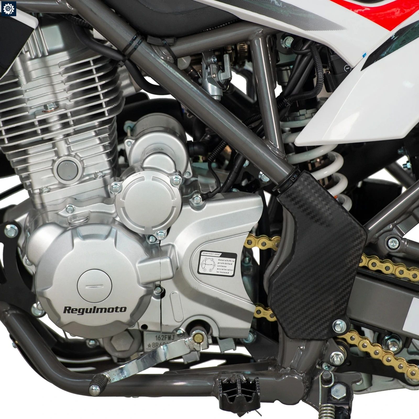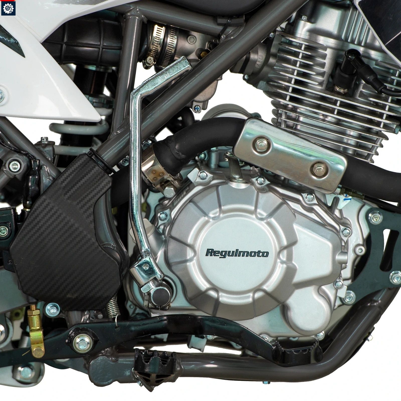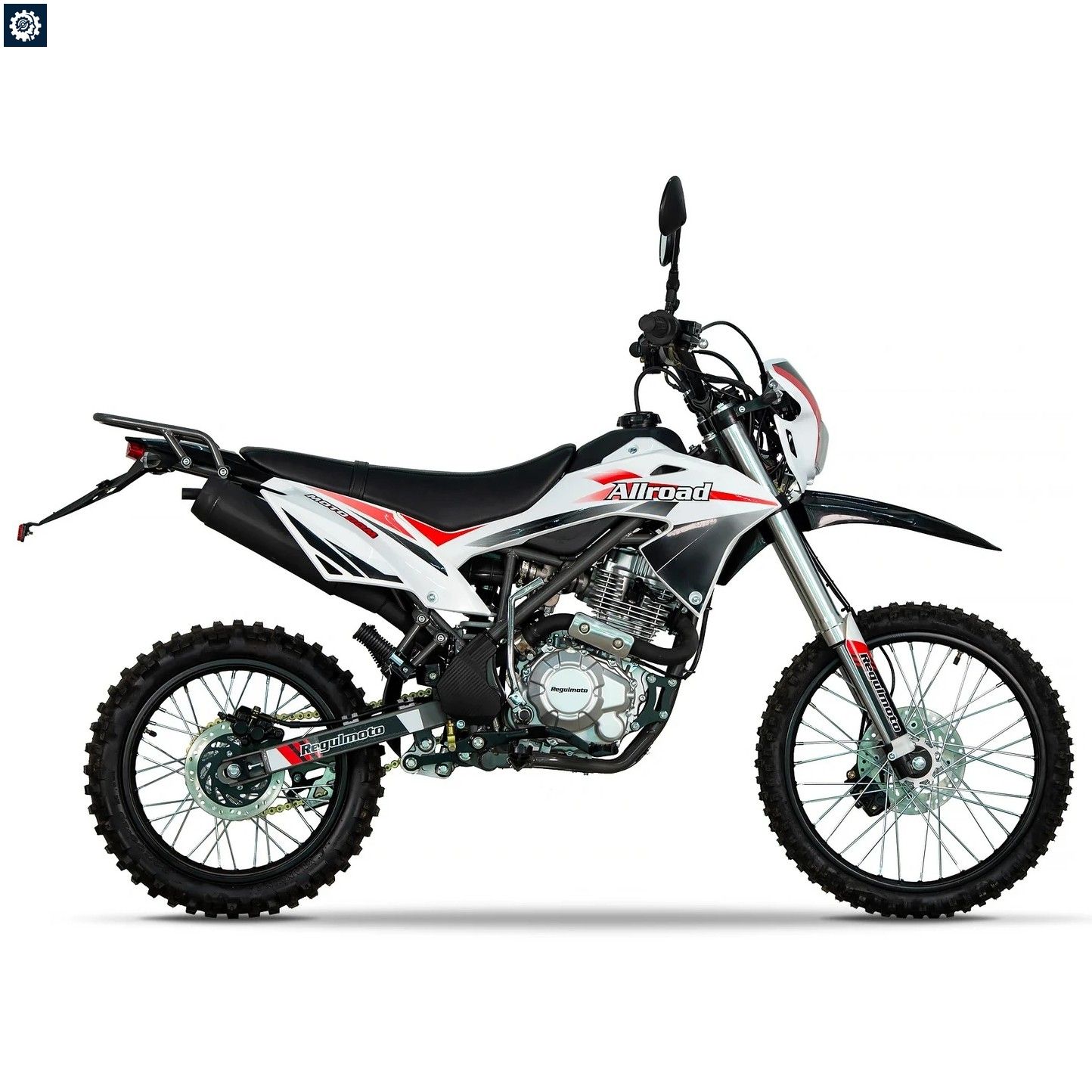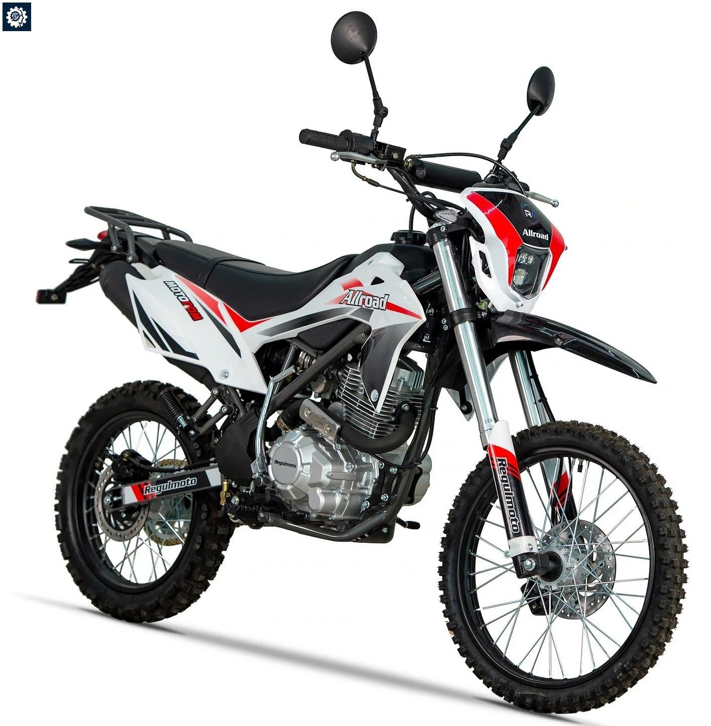 Regulmoto Allroad — легальный эндуро/dual sport с двигателем 150 см³, ПТС, колёсами 19/16, карбюратором NIBBI PE19, прогрессией в подвеске и низкой высотой по седлу 860 мм. Универсальный мотоцикл для города, дачи, рыбалки, грунтовок и ежедневных поездок. Легкий, экономичный и идеально подходит новичкам и райдерам роста 160–180 см.
