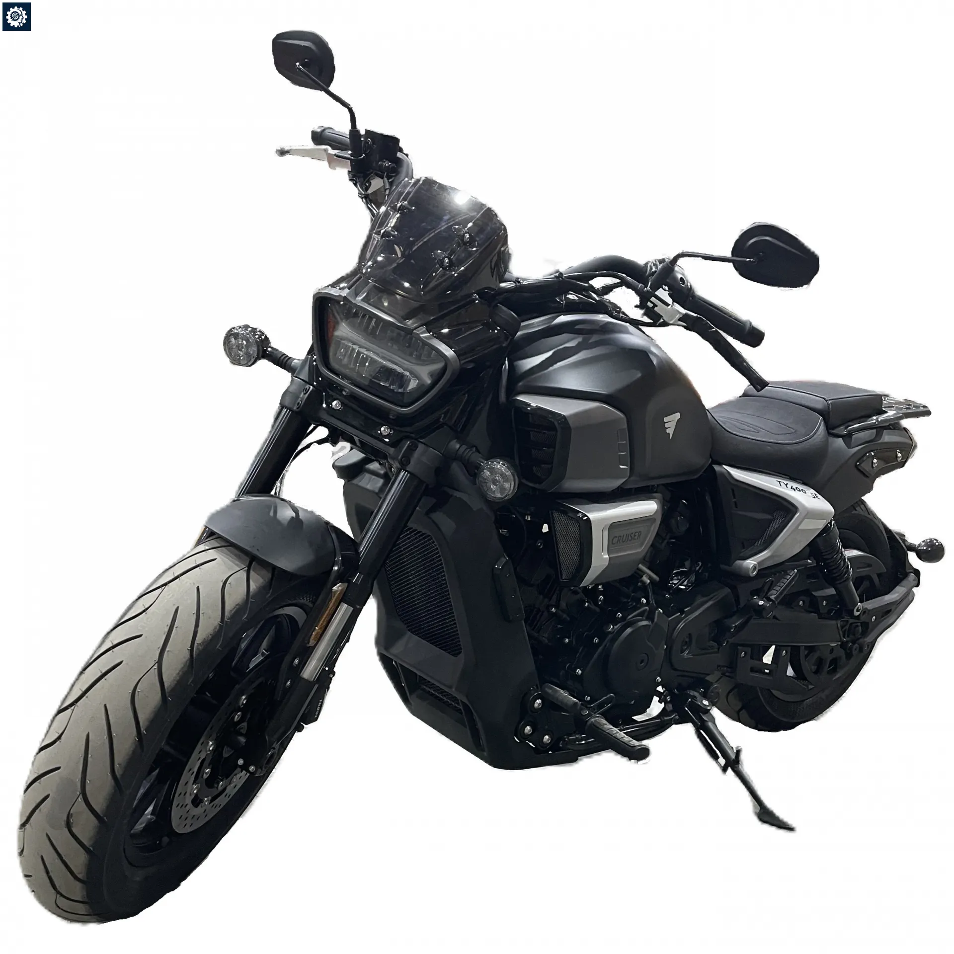 VMC CRUISER 650 выглядит современно и агрессивно, подчеркивая стиль круизеров нового поколения. Его дизайн — это гармоничное сочетание классических форм с дерзкими футуристическими акцентами. Передняя часть мотоцикла выделяется массивной, слегка квадратной LED-фарой с интегрированными поворотниками, что придает ему выразительный взгляд и запоминающийся силуэт в прошлость через будущее.